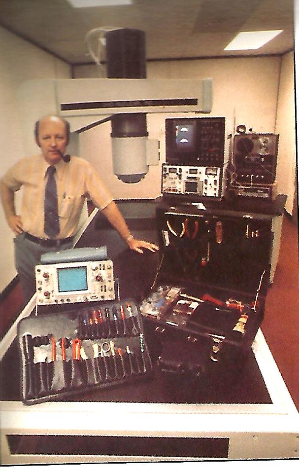 9.01 Pipe-smoking technician proudly shows all the kit needed to service an Ohio-Nuclear whole-body scanner! 1971