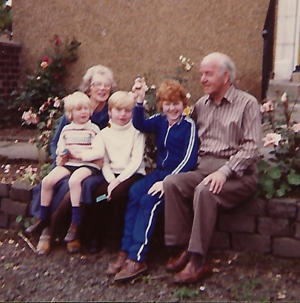 14.01 My parents, Mary and George Walker, with three grandsons at Parkhead. Jun 1980