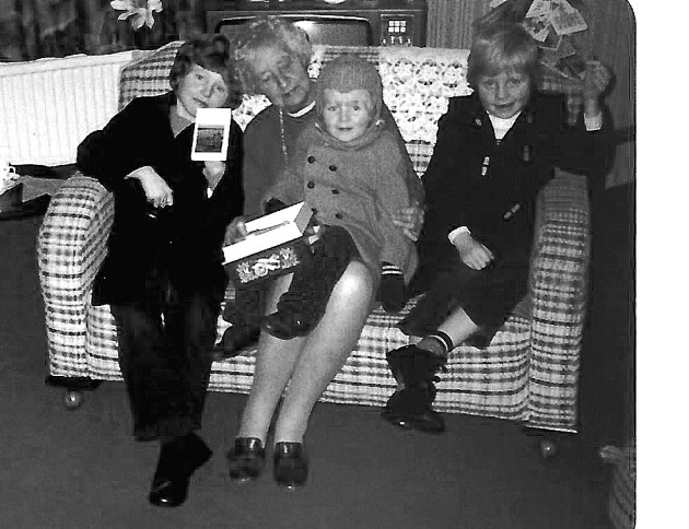13.03 My three sons on a visit to my old primary school teacher, Miss Gladys Donald, in Edinburgh. Oct 1980