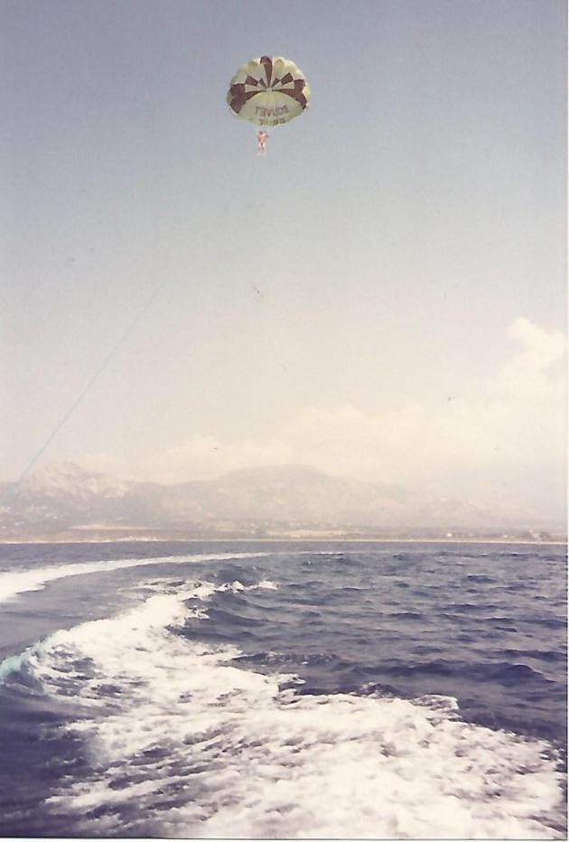 16.04 That really is me up there under the parachute somewhere, being towed behind Diana’s speedboat. Jul 1989